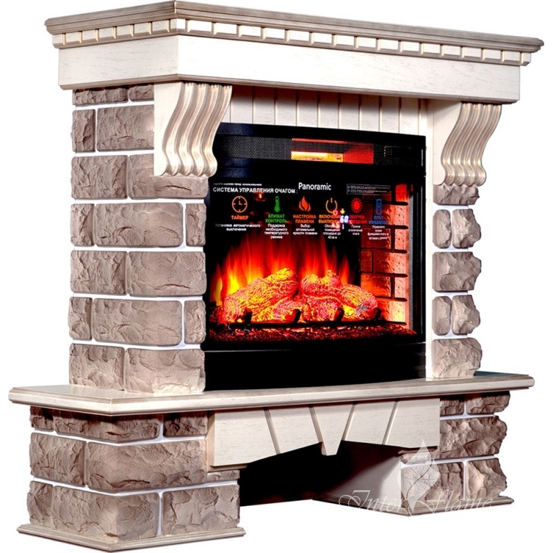 Каминокомплект InterFlame портал Exter Кавказ бежевый с очагом Panoramic 06-25 LED FX